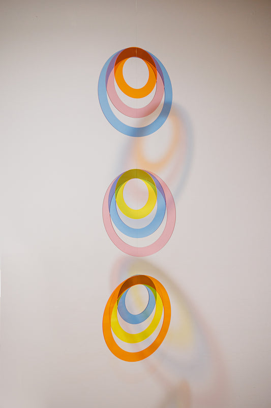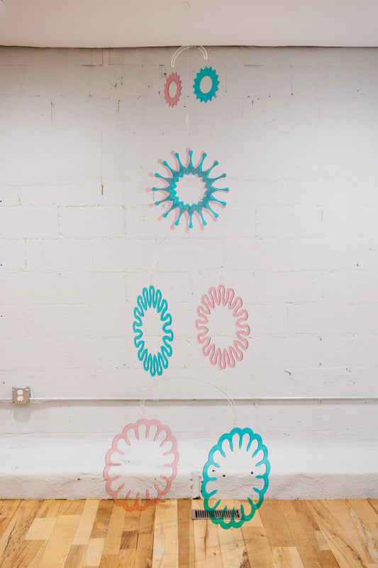Baltimore-based, Becky Borlan is a public artist who produces large-scale works that utilize light and color to spark reverence and wonder. Her installations are playful, vibrant, and whimsical. Applying the curiosity of a child to question everything, she dabbles with lots of different materials, she paints with the very expressive parts of color theory, and loops, bobs, weaves together forms to unite them