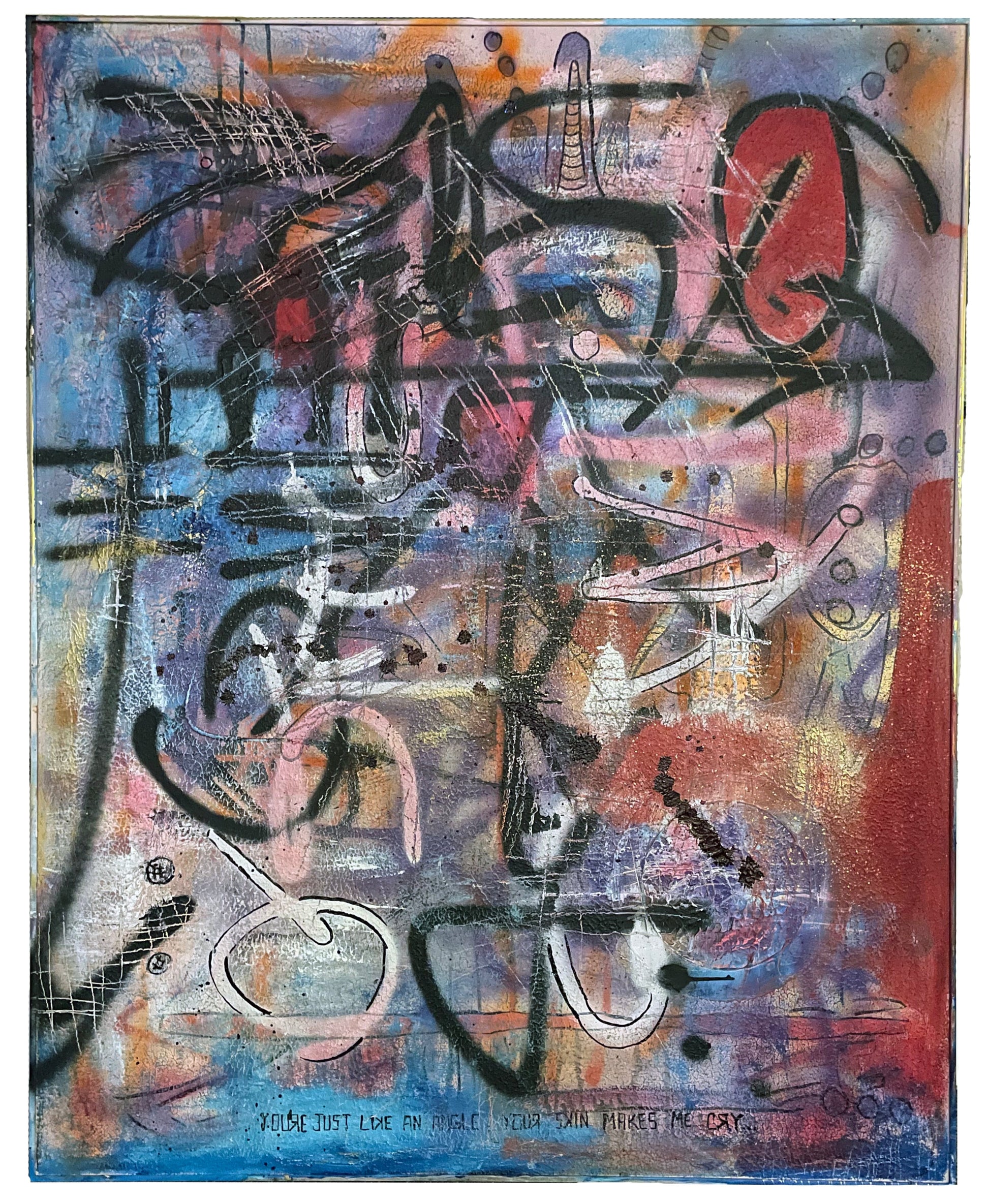The piece contains lyrics from Radiohead's 'Creep' and Electric Light Orchestra's 'Evil Woman.